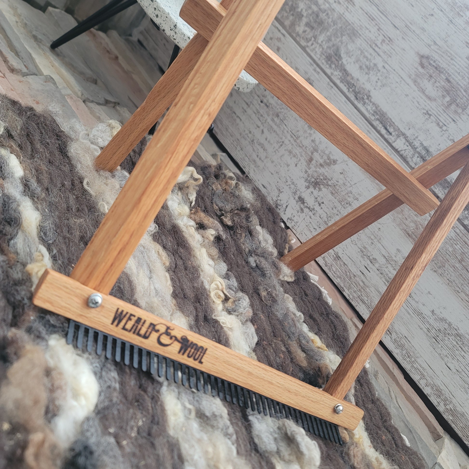 Looms include a durable set of steel combs for your warp strings, and can be partially disassembled for transport. All looms will ship assembled. Keep in mind that disassembling your loom may cause it to be out of square when you re-assemble it - but don't worry, it is easy to re-square! Just set your loom on the corner of a table and use the corner to align the loom - then re-tighten all the wing nuts!