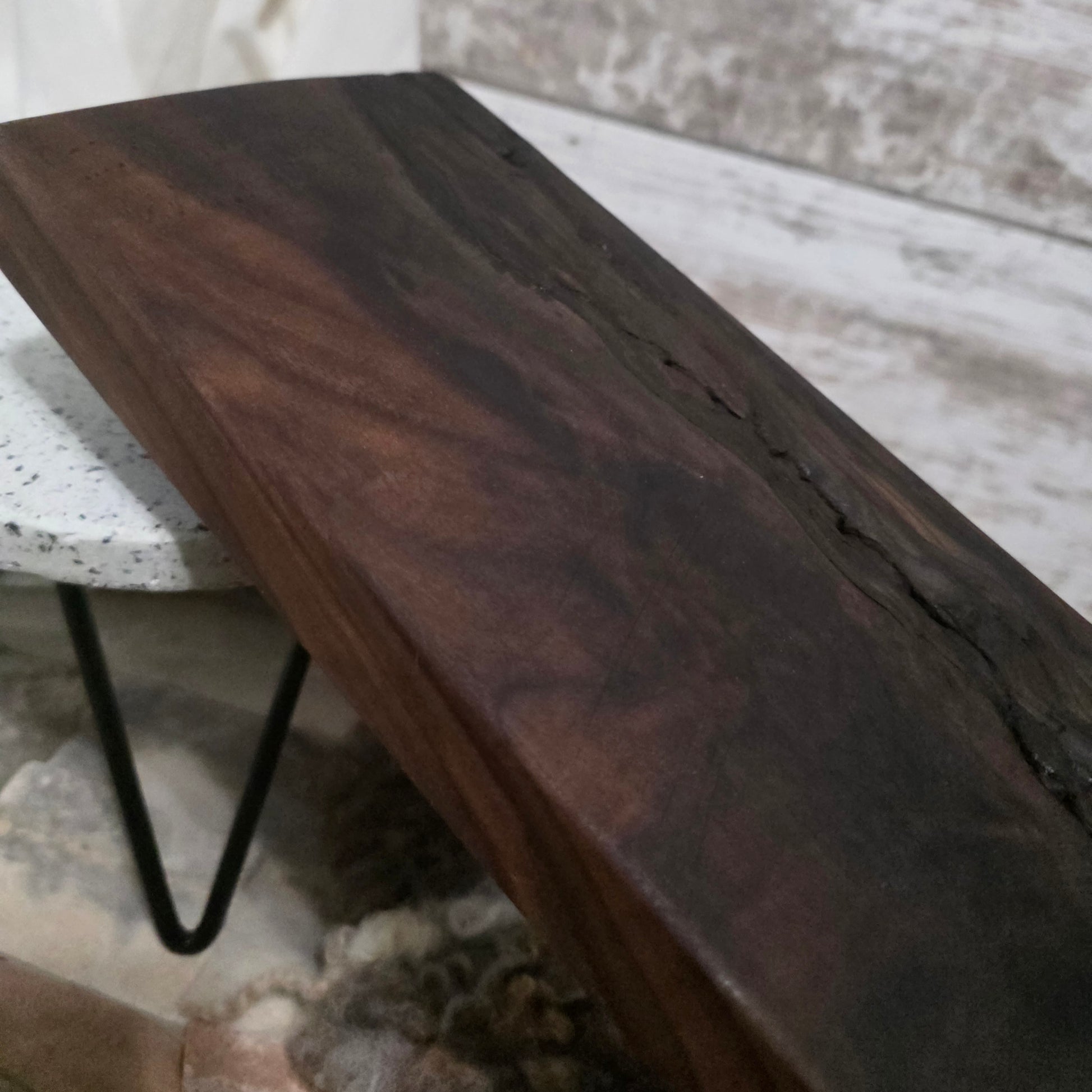 Our Figured Black Walnut Goldilocks Peg Loom Kit made from stunning figured black walnut boasts the rich deep color typical of this durable wood. This prized hardwood with its distinct character is sure to add an elegant touch to your weaving projects. Nothing wrong with using a beautiful tool to make beautiful things! The grain patterning resulting from the figuring is one of a kind and makes for a true heirloom piece.