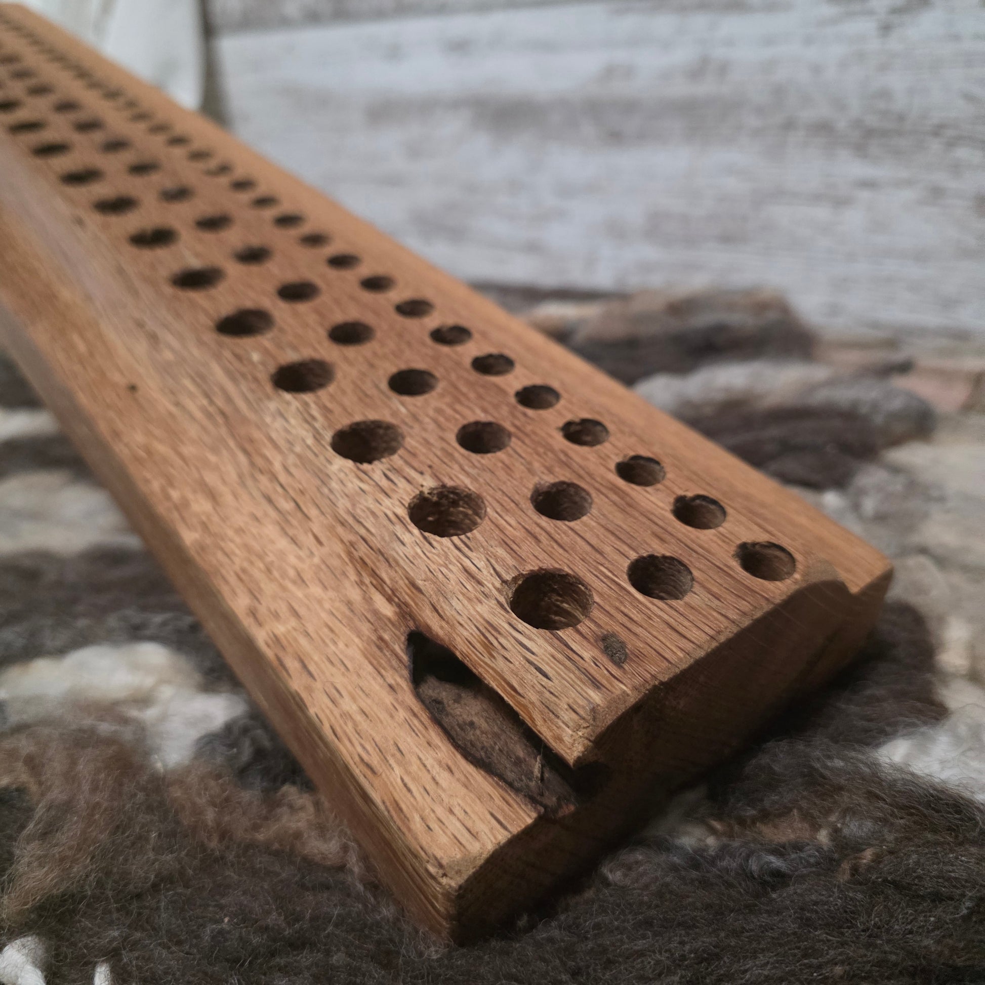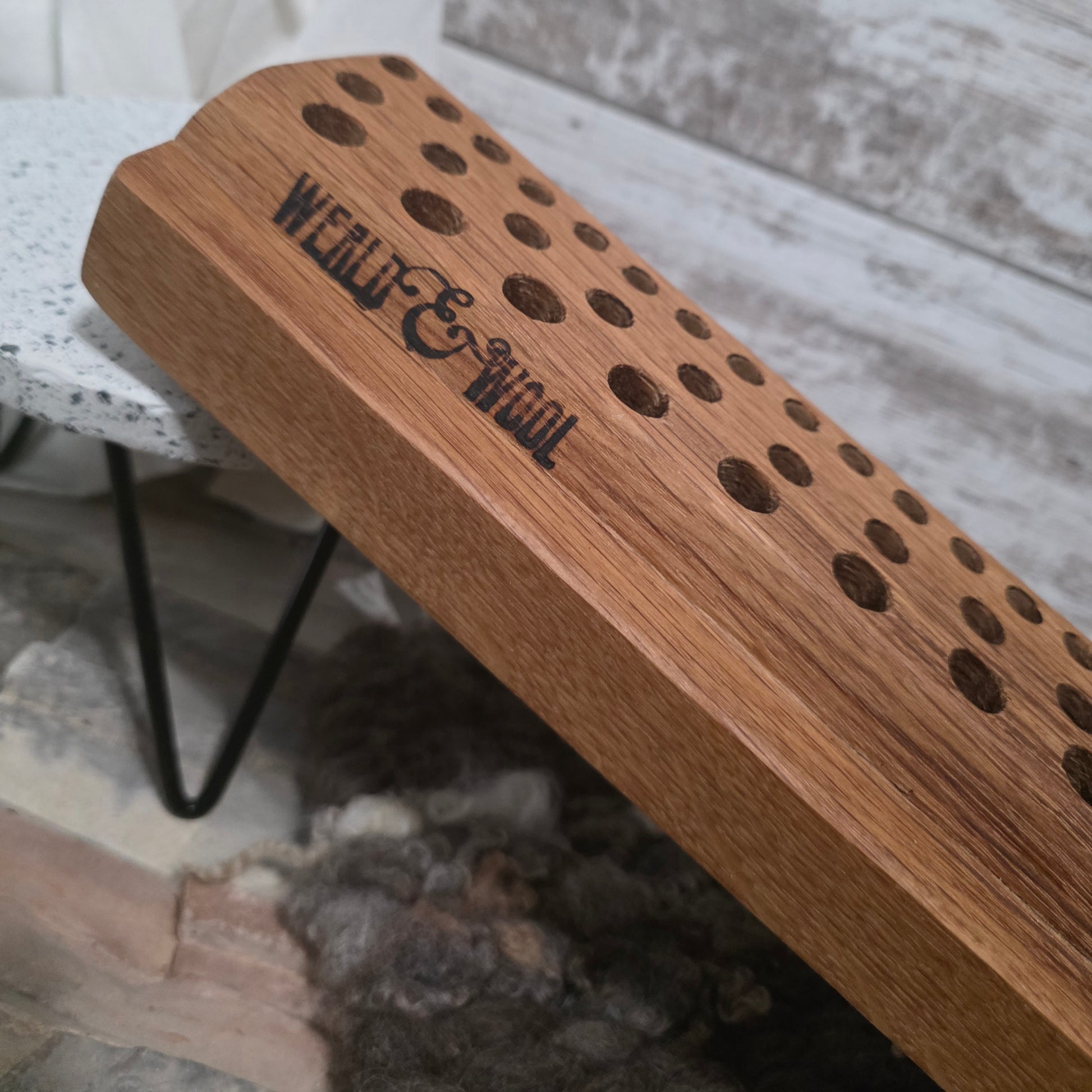 Our Goldilocks Peg Loom is an absolute beauty! Featuring three rows of pegs, it offers the ultimate flexibility for all your project needs. The first row is perfect for lighter weft such as yarn, the middle row (which is the standard size on The OG) is ideal for roving and locks, and the last row is designed for heavier weft like corespun.
