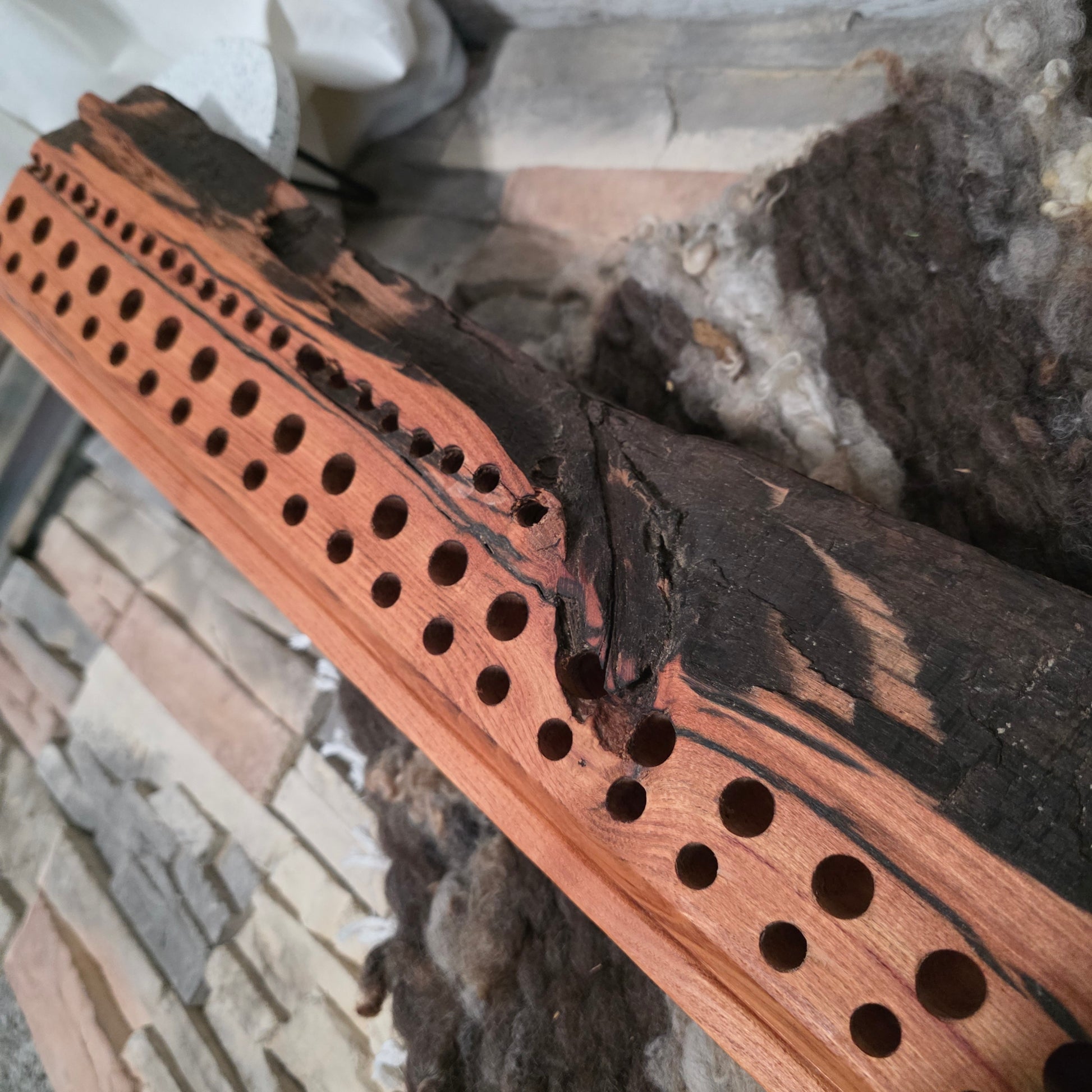 Our Honey Locust Goldilocks Peg Loom Kit features one of the strongest and stiffest domestic lumbers, while also being highly stable and rot resistant. This wood even glows under black light! These woods have stunning natural character and each board is very unique! The live edge details on this loom make this girl super unique!