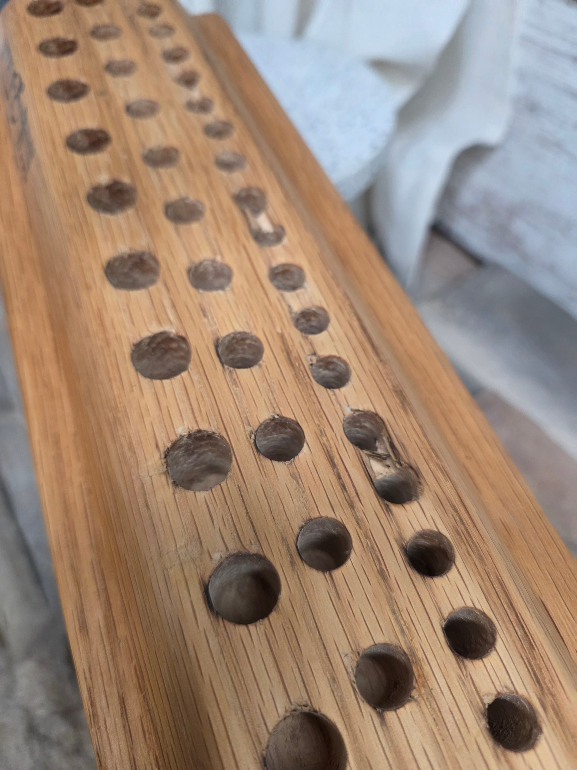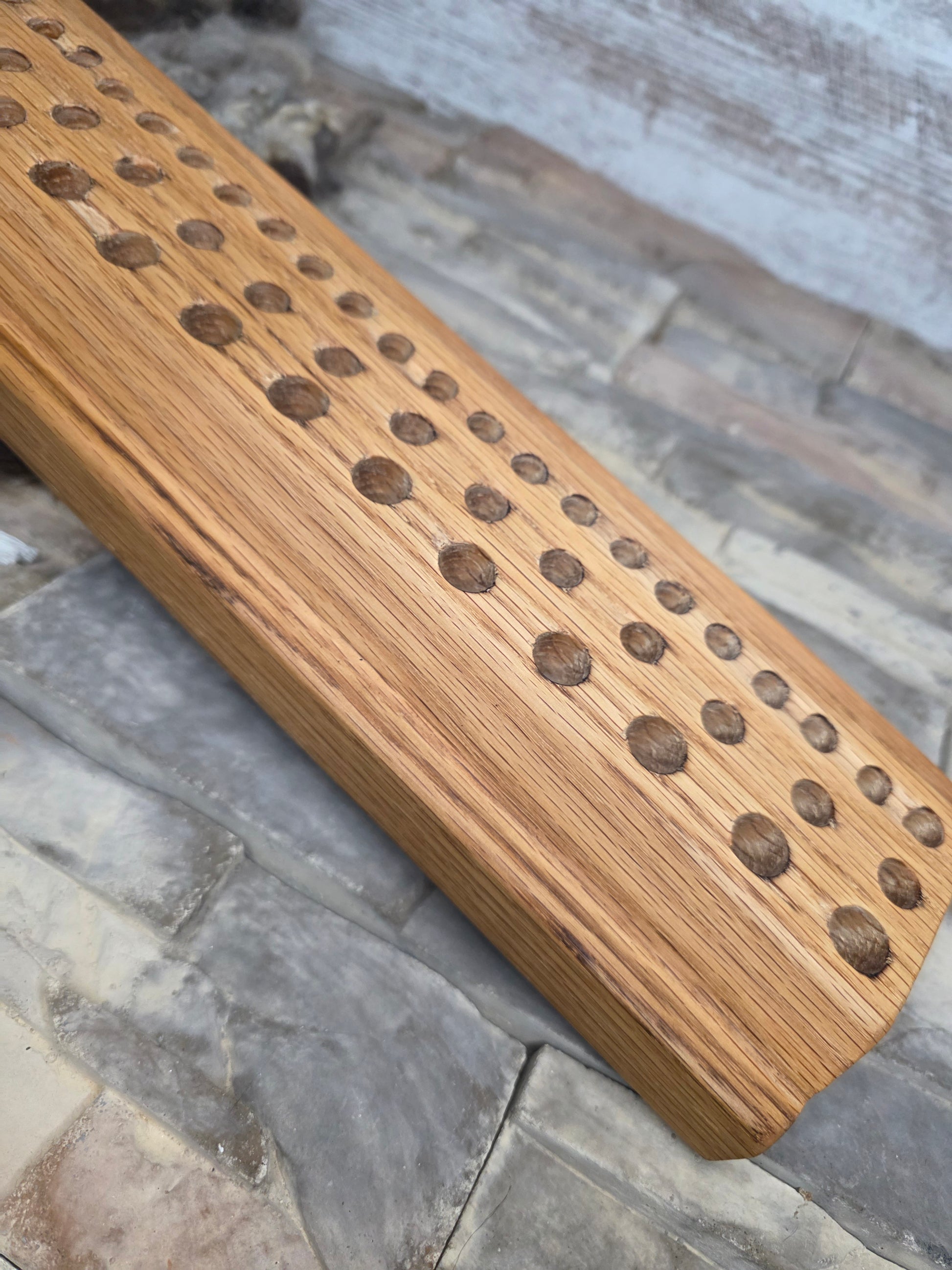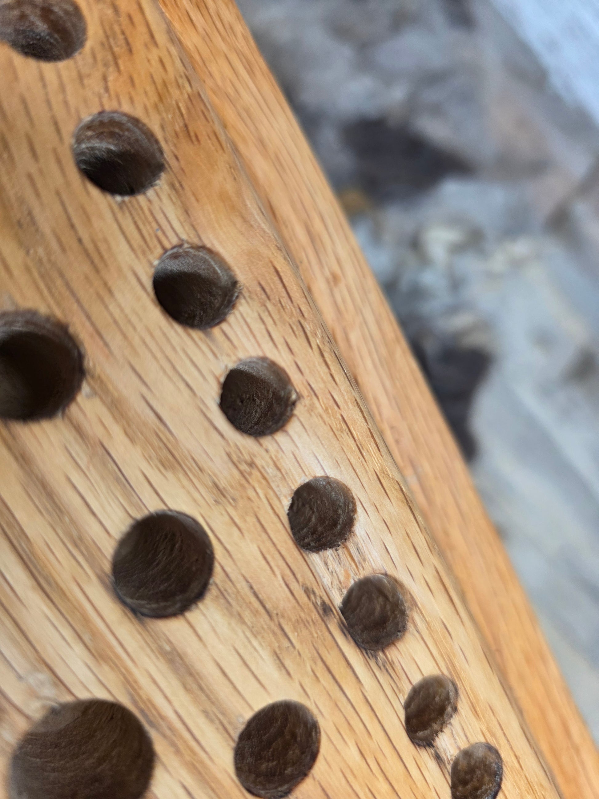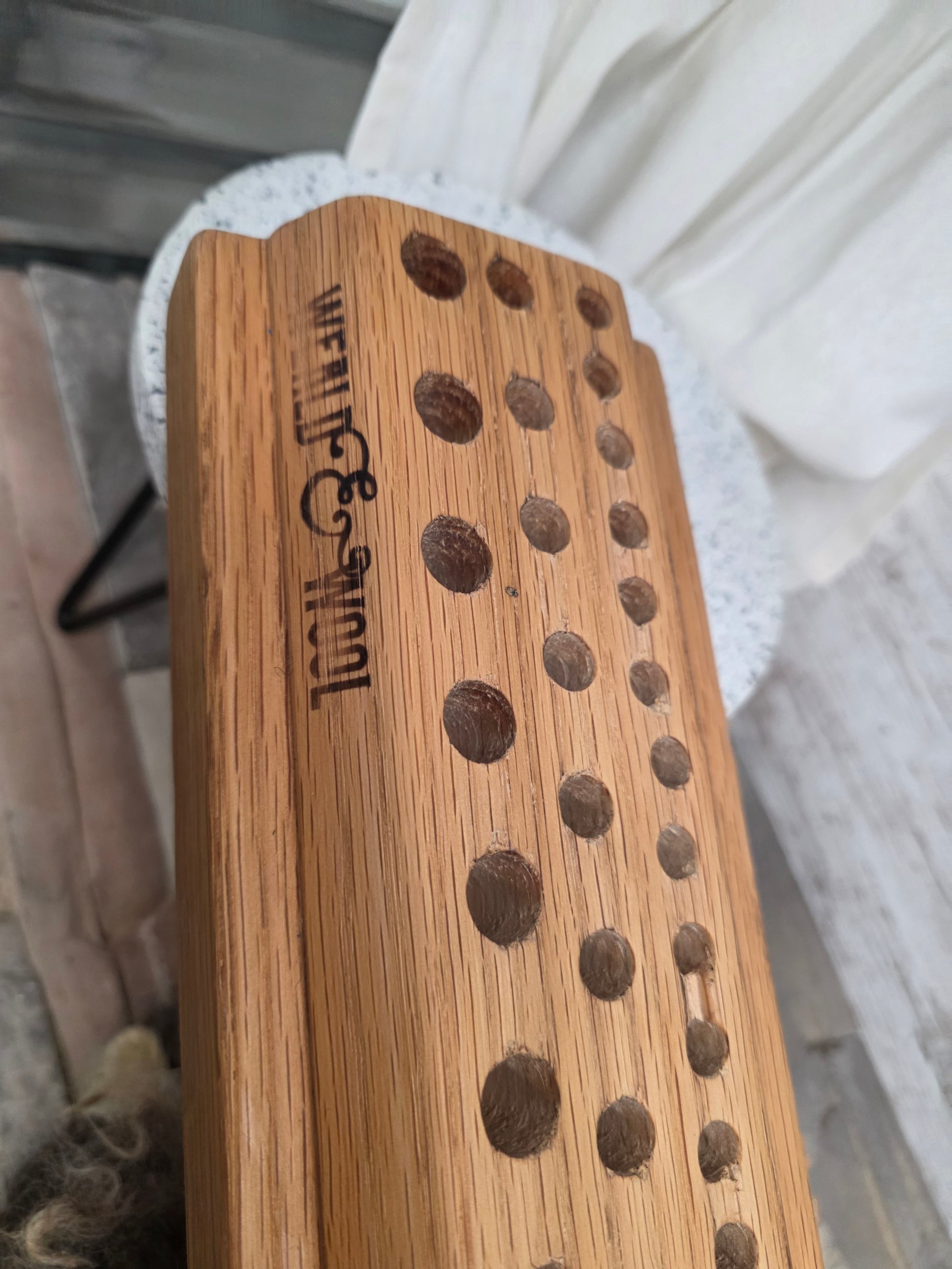 Our Goldilocks Peg Loom is an absolute beauty! Featuring three rows of pegs, it offers the ultimate flexibility for all your project needs. The first row is perfect for lighter weft such as yarn, the middle row (which is the standard size on The OG) is ideal for roving and locks, and the last row is designed for heavier weft like corespun.